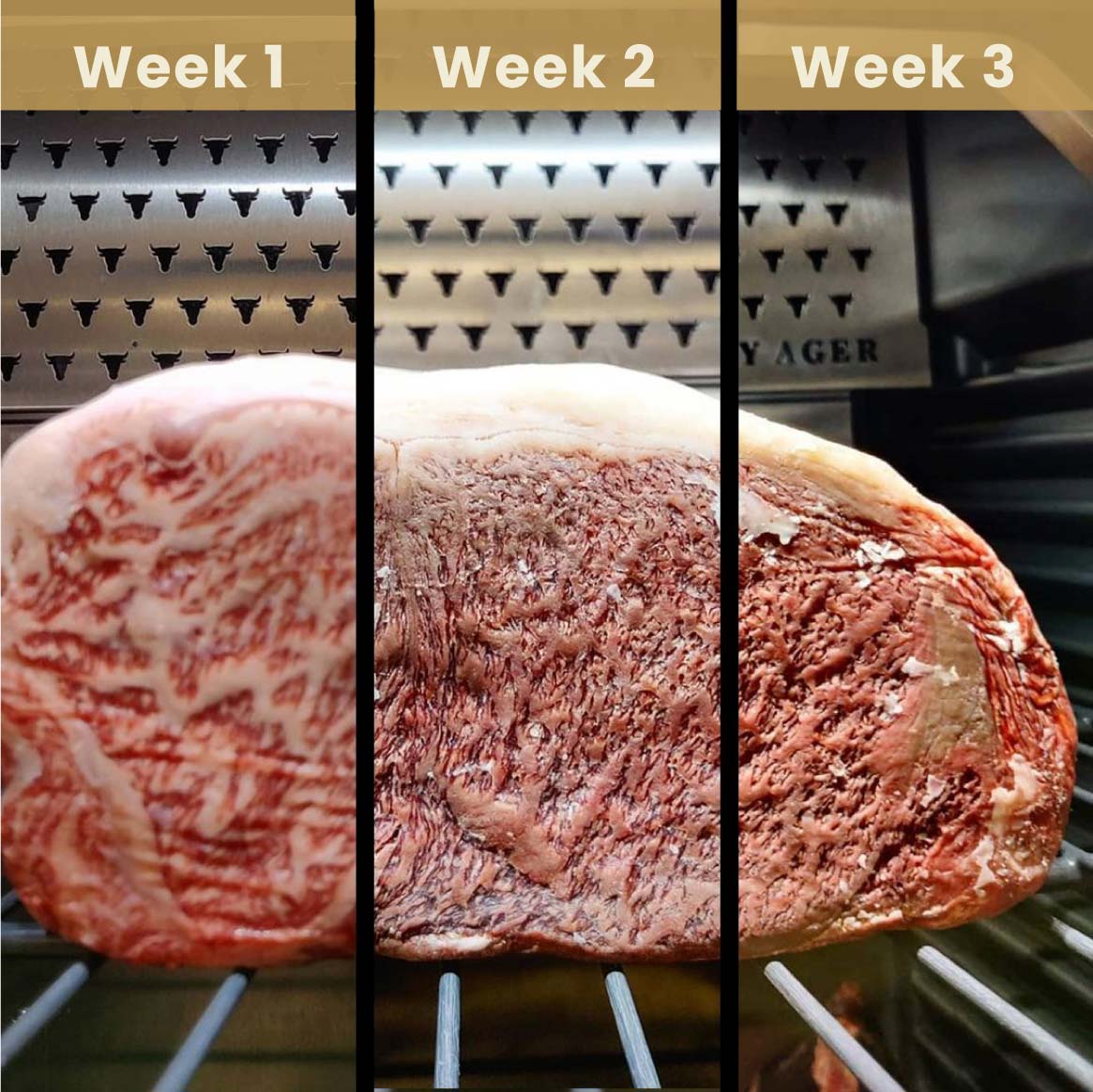 Dry Aging (lão hóa khô) là quá trình thịt được ủ trong môi trường kiểm soát nghiêm ngặt về nhiệt độ, độ ẩm và lưu thông không khí trong thời gian từ 21 đến 60 ngày. Trong thời gian này: